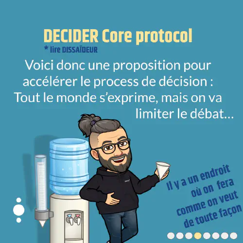 Il est plus aisé d’être “pousse décision” si votre groupe a un protocole de décision défini et connu de tous, comme le decider des core protocols