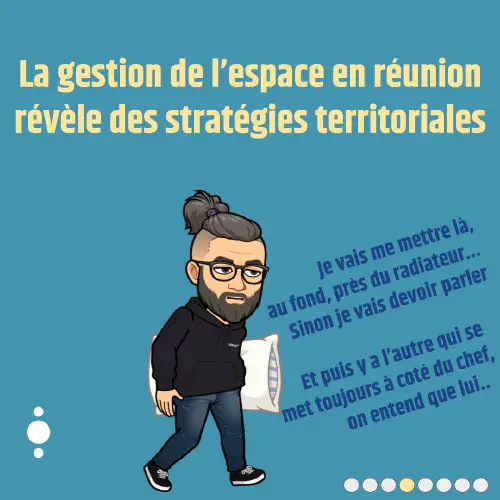 - La gestion de l'espace en réunion révèle des stratégies territoriales, comme l'occupation de l'espace physique ou la prise de parole.