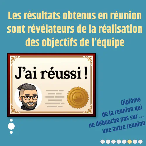 - Les résultats obtenus en réunion sont révélateurs de la réalisation des objectifs de l'équipe, et peuvent fournir des indications sur les progrès accomplis.